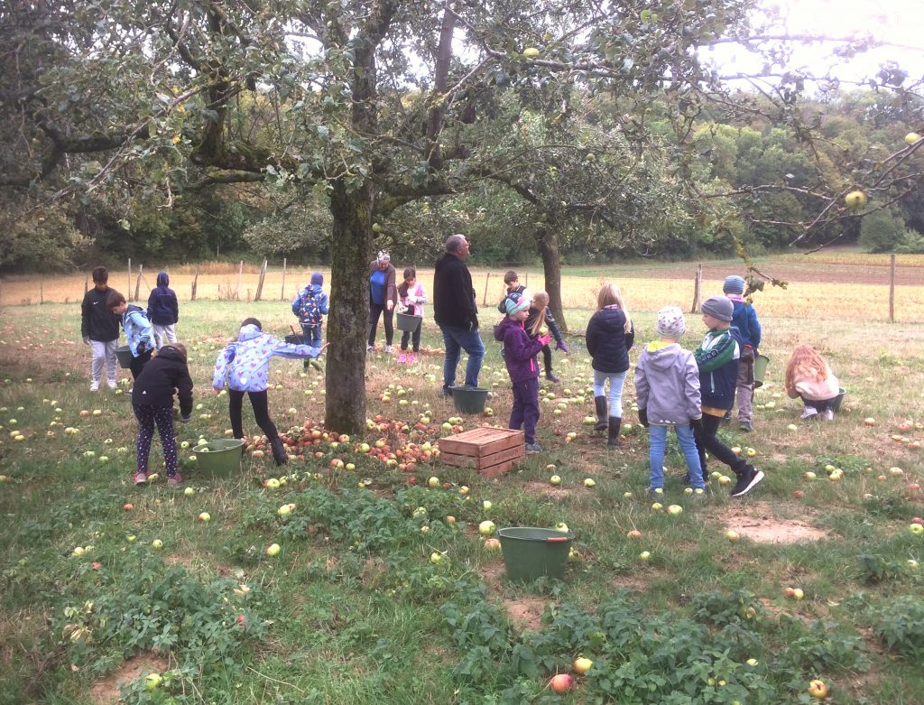 Der Herbst, der Herbst, der Herbst ist da … Das nahmen die Klassen 1a, 1b und 3b zum Anlass, sowohl am Weckerlesbrunnen auf der städtischen Streuobstwiese als auch auf einem privaten Gartengrundstück eine große Apfel-Sammel-Aktion zu starten. Alle drei Klassen sammelten eifrig und füllten Sack um Sack. Zum Glück spielte das Wetter mit, so dass es eine rundum gelungene Aktion war und man lauter leuchtende Augen und strahlende Gesichter sah!