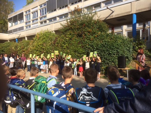 Am 18. September 2020 wurden die neuen Erstklässler an der Schwandorfgrundschule begrüßt. Wegen der Corona-Vorschriften fand die Einschulung im Freien und nur mit den Eltern der neuen Erstklässler statt, aber die zweiten Klassen und Frau Kasamas gestalteten die Feier liebevoll und kurzweilig. Nachdem alle Schulanfänger willkommen geheißen und in ihre Klassen aufgeteilt wurden, durften sie mit den neuen Klassenlehrerinnen ins Klassenzimmer gehen und die erste Schulstunde haben.