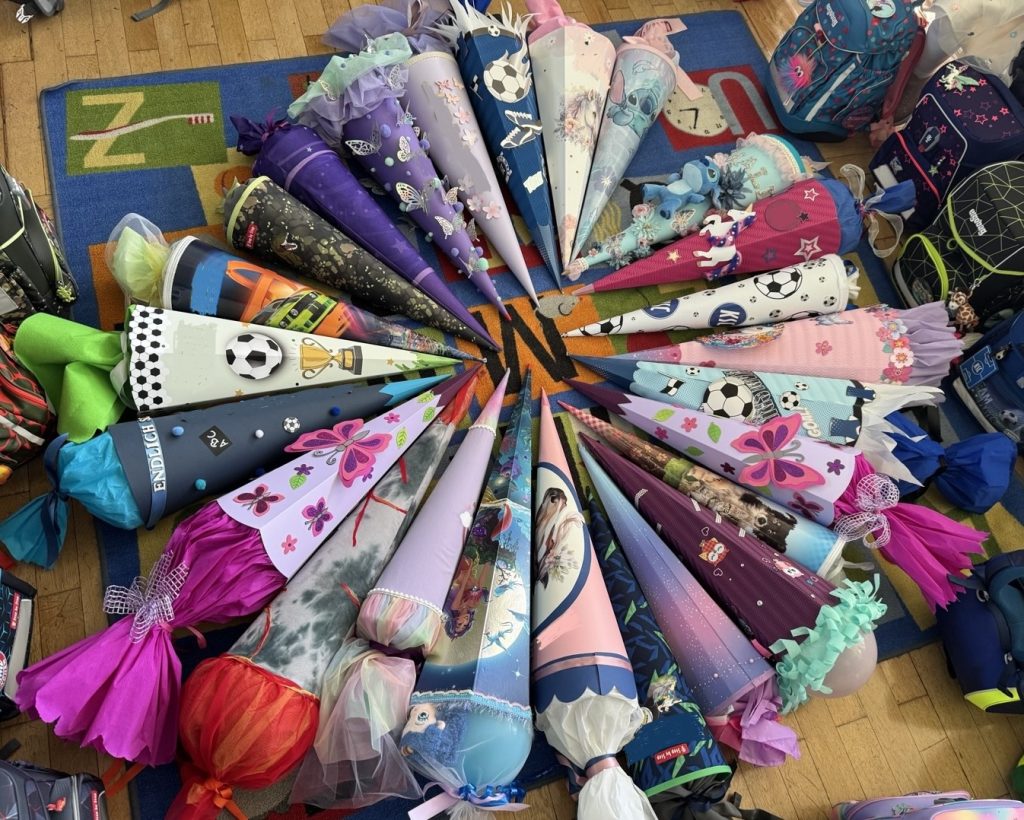 Am Freitag wurden die neuen Erstklässlerinnen und Erstklässler bei uns an der Schwandorf-Grundschule willkommen geheißen. Die ganze Schulgemeinschaft begrüßte die Erstklässler mit dem Schulsong und gemeinsam wurde später dann noch das Lied Volltreffer gesungen. Nach einem schönen musikalischen Harfen- und Flötenstück und einer netten Begrüßung hatten dann die Zweitklässler ihren großen Auftritt mit dem einstudierten Stück, bei welchem sie über sich hinauswuchsen. Im Anschluss gingen die neuen ersten Klassen mit ihren Lehrerinnen in die Klassen und erlebte die erste Unterrichtsstunde. Die Eltern wurden unterdessen von den Viertklasseltern bei bestem Wetter bewirtet.