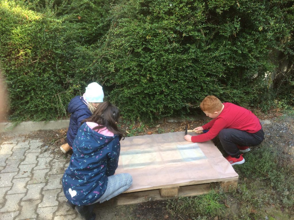 Den Inhalt verteilen und platt trampeln machte so viel Spaß, dass einige Kinder Freitag länger bleiben wollten und dann erst deutlich nach Schulschluss mit dreckigen Hosen, Schuhen und Händen ins Wochenende starteten.