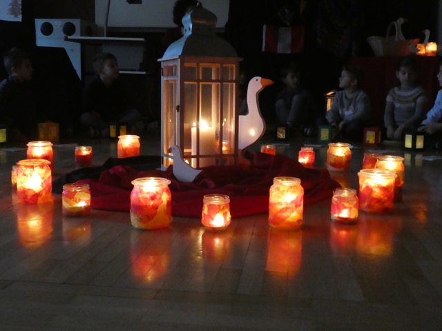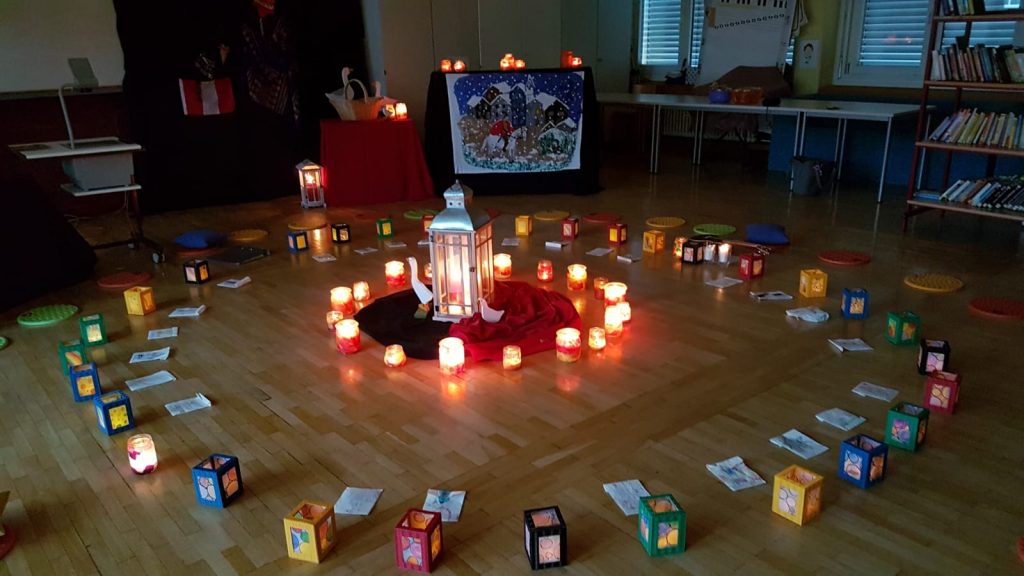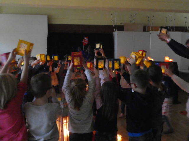 Am 11. November 2020 gab es für die beiden ersten Klassen der Schwandorfgrundschule eine kleine Sankt Martins Feier. Die Kinder der Klasse 1a spielten die Martinsgeschichte vor und die Kinder der Klasse 1b führten zum Thema Sankt Martin ein Schattentheater auf. Alle Erstklässler sangen gemeinsam Laternenlieder. Frau Garrecht stellte den Kindern das Projekt aus Peru vor, wofür die Erstklässler mit ihren kleinen selbst gestalteten gefüllten Tütchen für die Kinder in Peru spendeten. Auch die anderen Klassen brachten ihre Sankt Martins Spenden. Mit einem schönen Lichtertanz klang die Sankt Martins Feier stimmungsvoll aus.