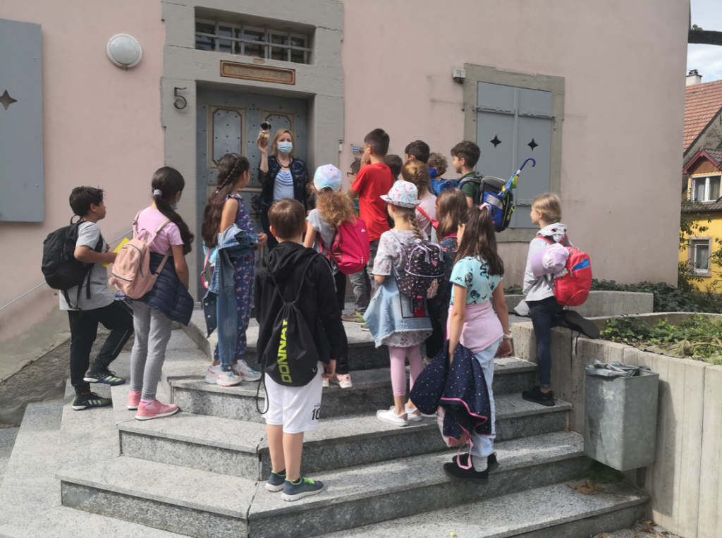 Bei durchwachsenem Wetter machte sich die Klasse 3b auf den Weg, um das neue Angebot der Stadtbücherei für Schulklassen anzunehmen. Frau Engel von der Stadtbücherei hatte eine Art Schnitzeljagd vorbereitet, bei welcher das Brettener Hundle im ganzen Innenstadtgebiet Bücherschätze versteckt hatte, die durch das Lösen witziger Rätsel gefunden werden mussten. Ausgestattet mit Stadtplänen und den Aufgaben machte sich die Klasse auf die Suche und schon bald war der erste Bücherschatz gefunden. Obwohl das Wetter zunehmend schlechter wurde, konnten alle Rätsel gelöst werden und die Klasse erfuhr nebenher alles Wichtige zu den Brettener Sehenswürdigkeiten.