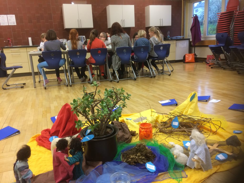 Der Tag wurde mit Gesang und einer liebevoll gestalteten Andacht mit kindgerechten Impulsen und Gebeten gemeinsam gestartet. Die Runde mit ca. 15 Kindern und Lehrerinnen war gemütlich und besinnlich und wer einmal dabei war kam gerne wieder – sicher nicht nur wegen des leckeren Frühstücks, das zum Abschluss noch gemeinsam gegessen wurde.