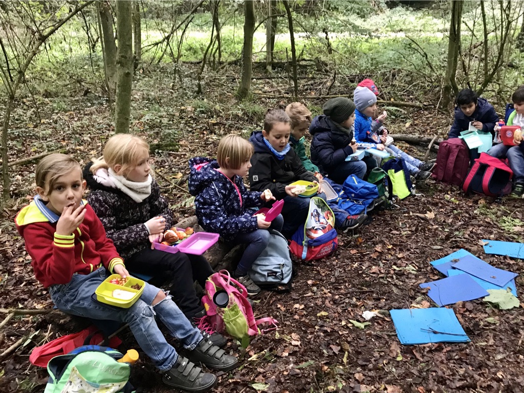 Am 13. Oktober 20 war die Klasse 2a mit dem Waldklassenzimmer unterwegs. Zusammen mit Herrn Hoffmann gab es viel zu entdecken. Zuerst musste allerdings ein Waldsofa gebaut werden, so dass das langersehnte zweite Frühstück eingenommen werden konnte.